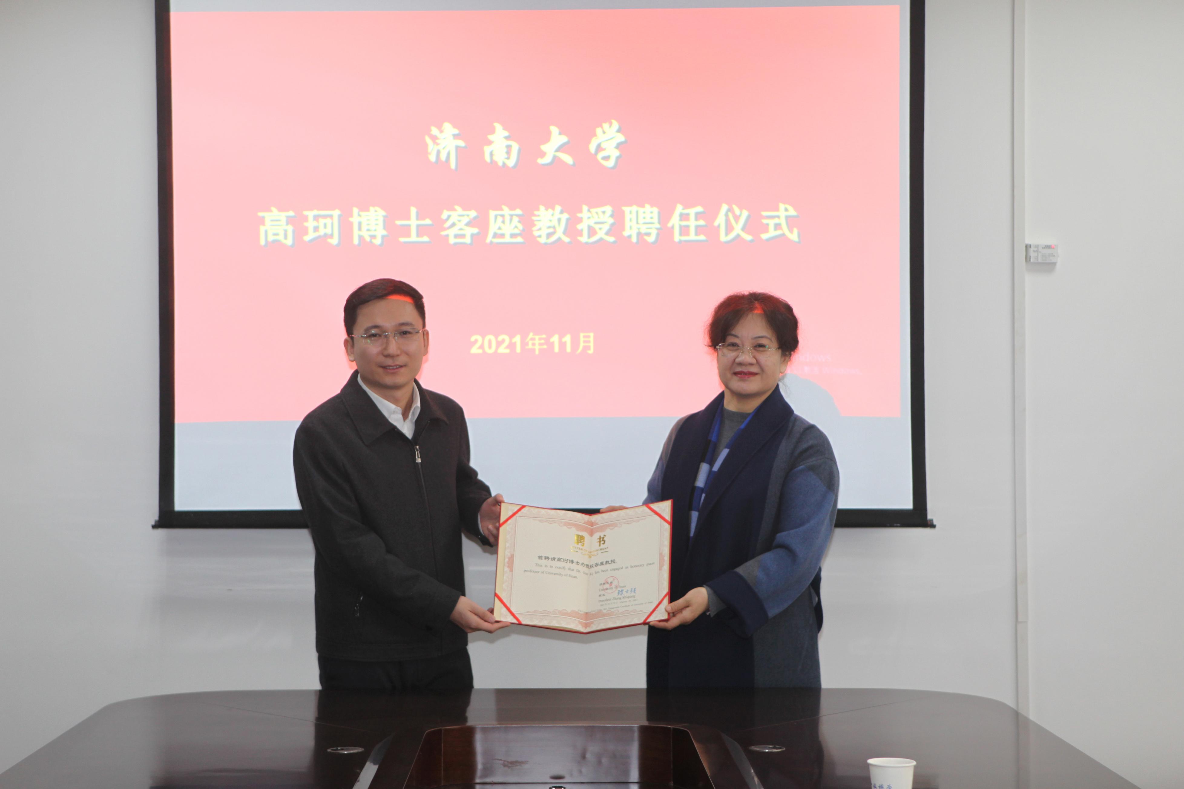 李光红副校长对聘请高珂博士为我校客座教授表示热烈欢迎,介绍了学校及betway网页登录工作的发展现状。她指出,济南大学是开放办学的,聘任兼职教授符合学校的发展思路,希望今后加强与政府部门合作,共同为山东省经济社会发展建言献策。在与会人员见证下,李光红副校长为高珂博士颁发聘书。